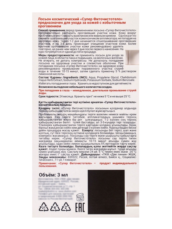 Жидкость косметическая «СуперФиточистотело» предназначена для ухода за кожей с избыточным ороговением.