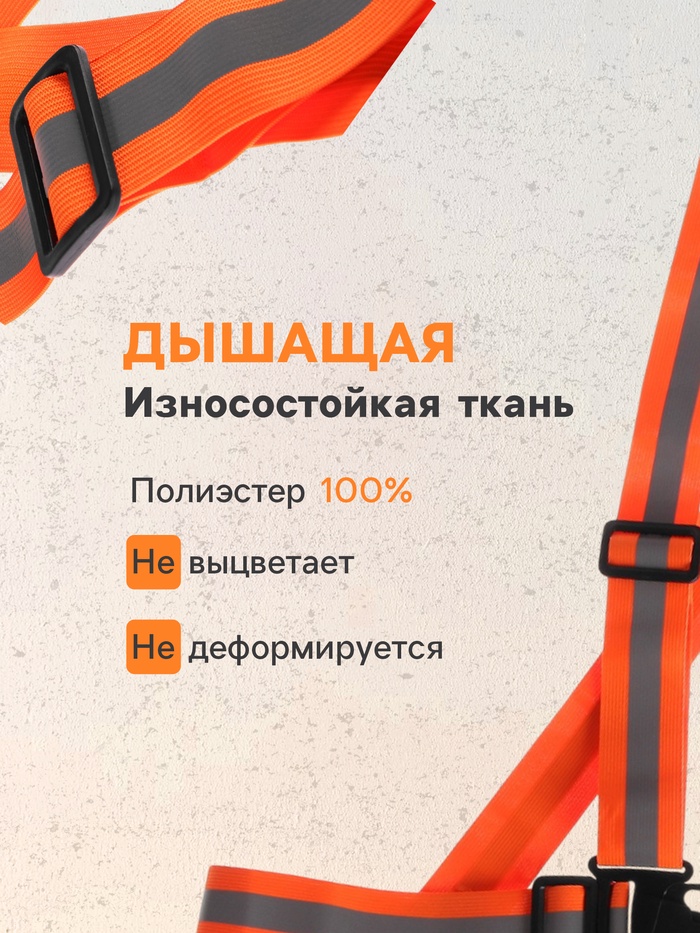 Светоотражающий ремень с лямками – это незаменимый аксессуар для обеспечения безопасности на дороге в тёмное время суток. Благодаря стильному оранжевому цвету и широким световозвращающим полосам он делает пользователя заметным на значительном расстоянии, снижая риск аварийных ситуаций.