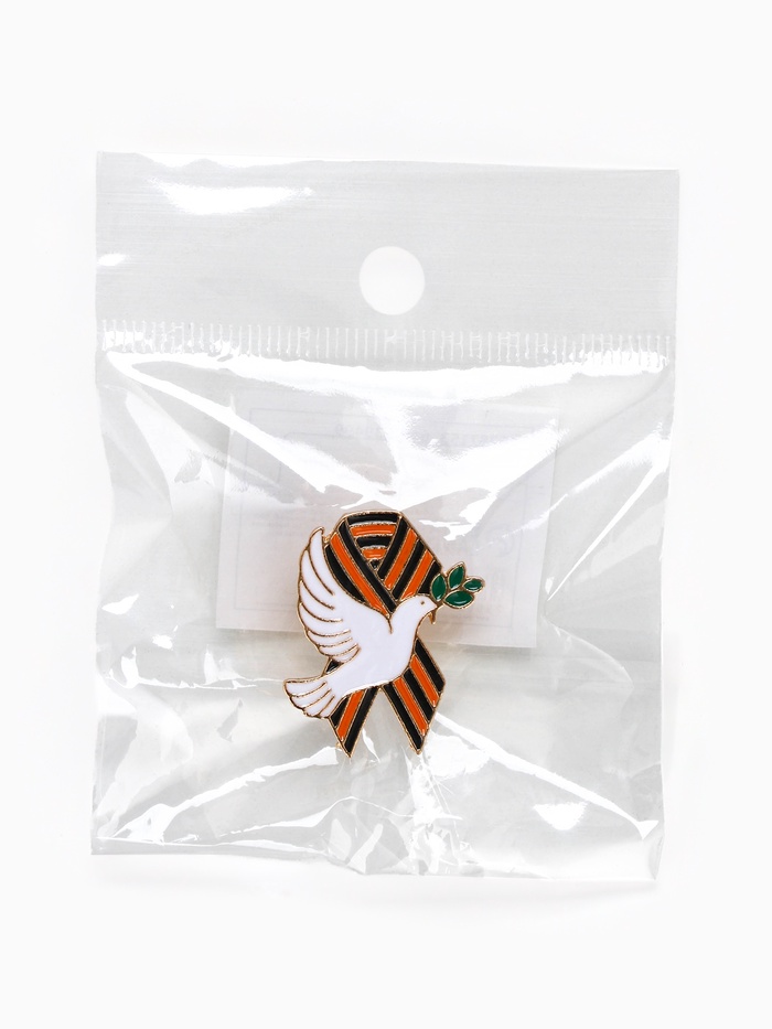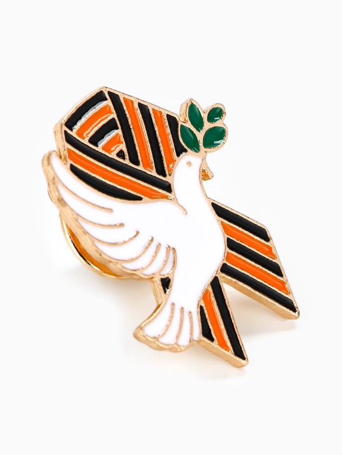 Значок на 9 мая с георгиевской лентой «Голубь мира», 2.5×3 см