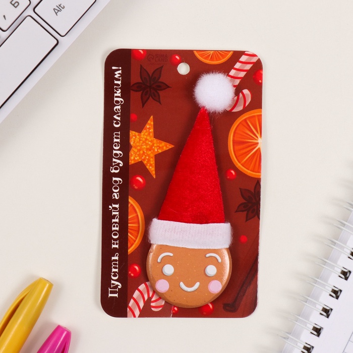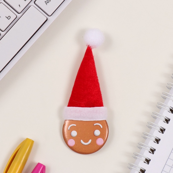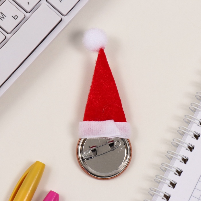 Значок новогодний закатной с колпаком d=35 мм «Пряник» 6.5×11 см
