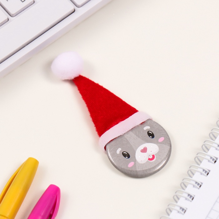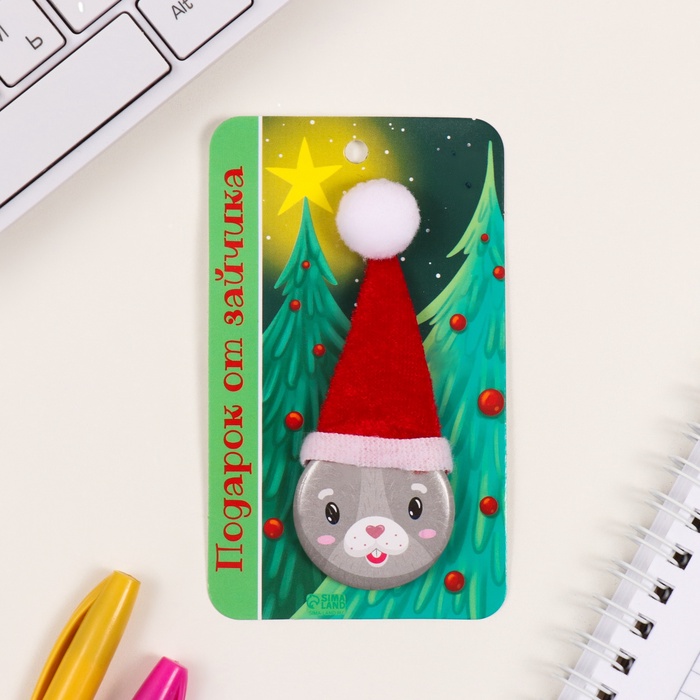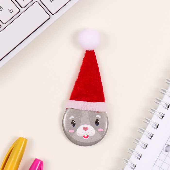 Значок новогодний закатной с колпаком d=35 мм «Зайчик» 6.5×11 см