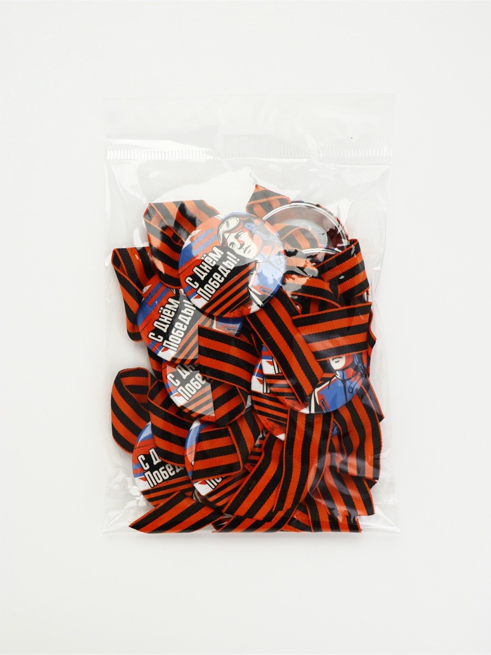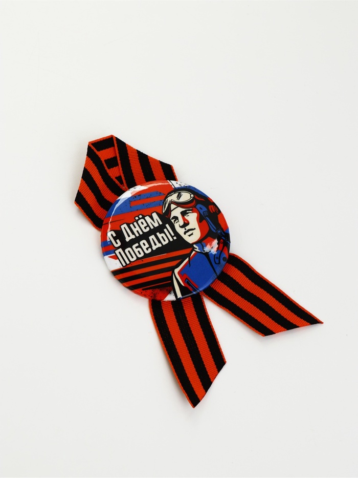 Значок с лентой с лентой "9 мая, с днём победы"