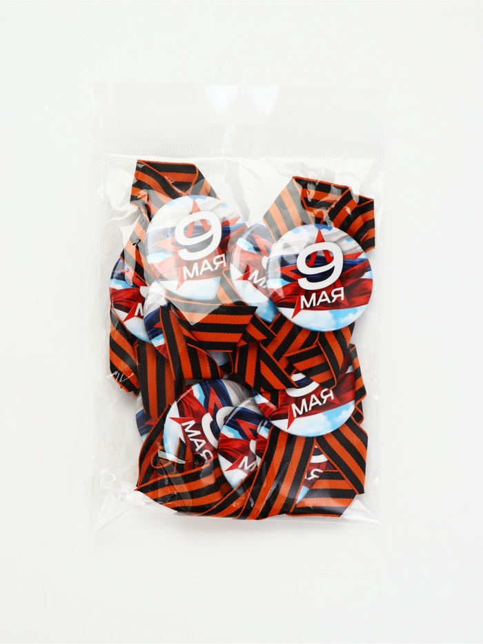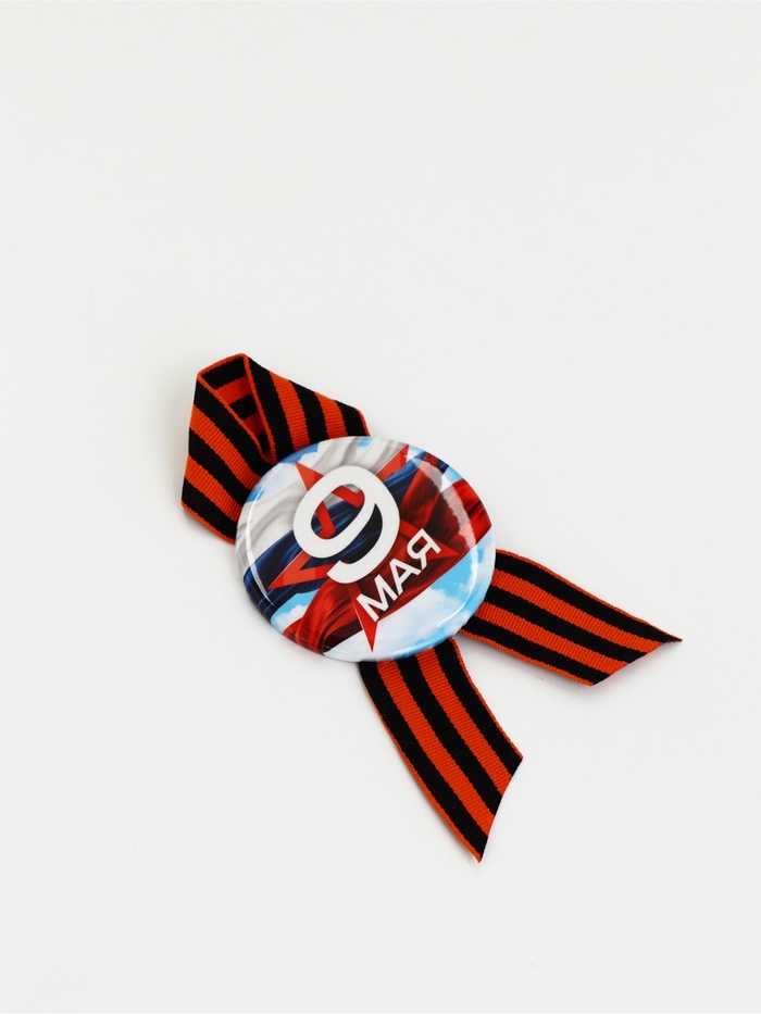 Значок с лентой с лентой "9 мая звезда" триколор