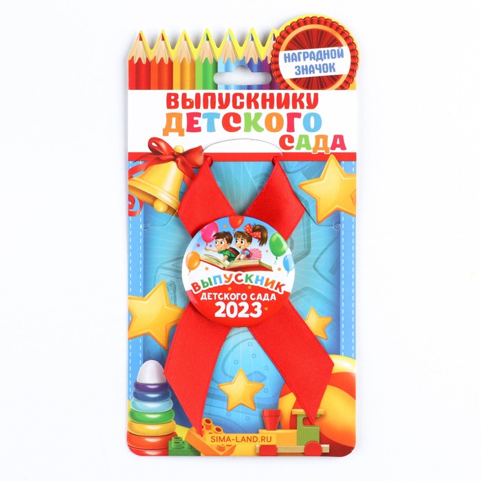 Выпускной - это особое событие для каждого ребёнка. Сувенир изготовлен из лёгкого пластика и декорирован яркой текстильной лентой шириной 1,8 см. Изделие дополнено булавкой на оборотной стороне, так что его сразу можно надеть на счастливого получателя. Каждый значок на булавке с лентой прикреплен к яркой, нарядной подложке - открытке, ребенку будет вдвойне приятно получить такой презент
