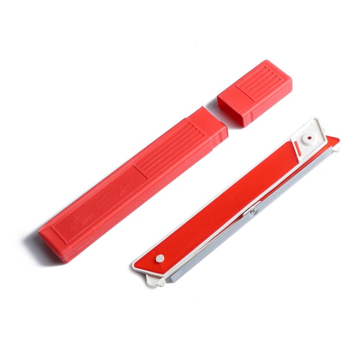 Данный знак выполнен в соответствии с ГОСТ и отвечает всем требованиям ПДД. Он обладает оптимальной высотой — 27 см, что делает его хорошо заметным на расстоянии. Благодаря складной конструкции он легко размещается в багажнике любого автомобиля и не занимает много места.
