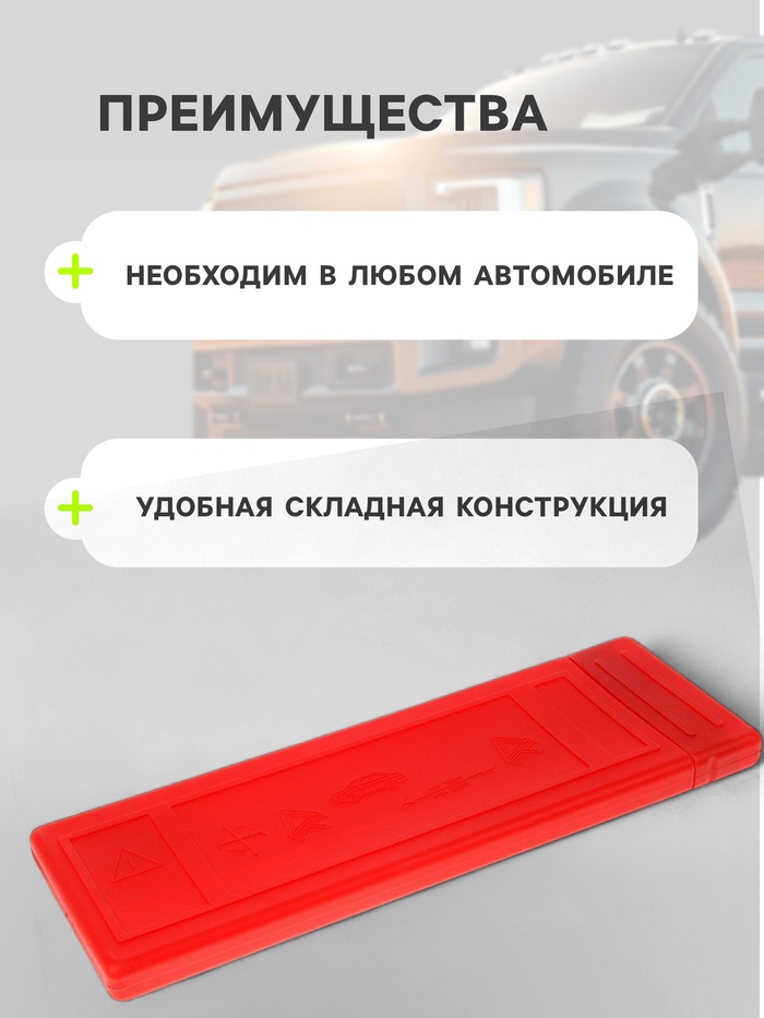 Знак аварийной остановки необходимо иметь в любом автомобиле на случай экстренной ситуации: при ДТП или неисправности автомобиля. Знак имеет прочный корпус со светоотражающей поверхностью и дополнительной жёсткой пластиковой вставкой, которая обеспечивает лучшую видимость на дороге и предупреждает других участников дорожного движения о сложившейся ситуации. Также знак оснащён удобной складной конструкцией, которая легко и быстро собирается при необходимости. Знак аварийной остановки соответствуют правилам дорожного движения и всем международным стандартам.