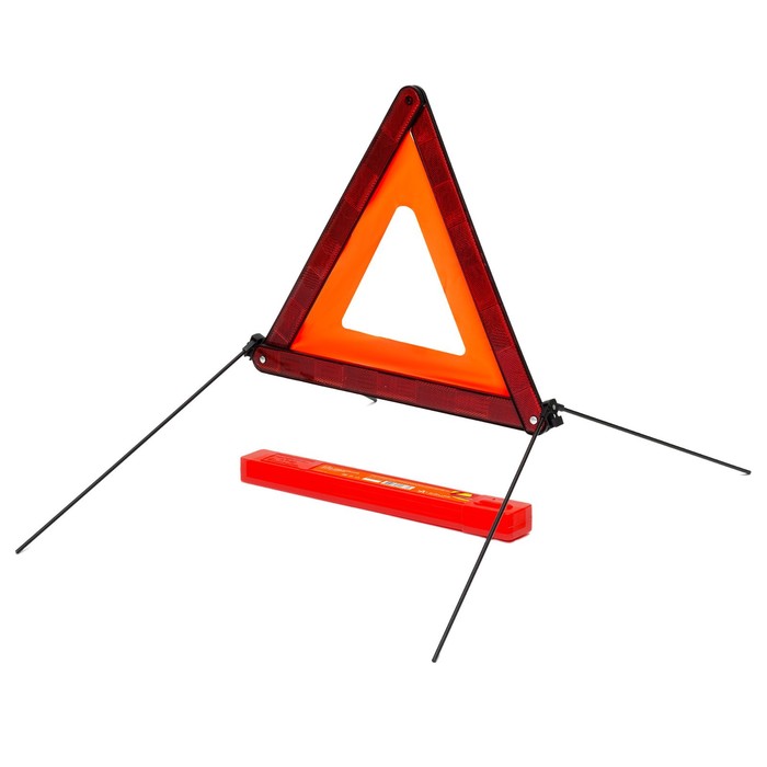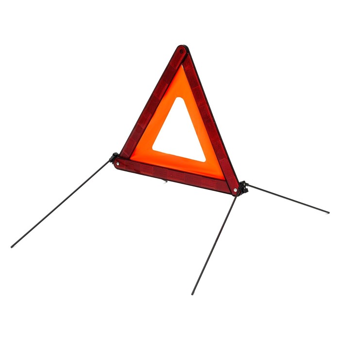 Знак аварийной остановки представляет собой равносторонний треугольник. Внешняя сторона этого треугольника обклеивается полосой, изготовленной из светоотражающего материала. Это необходимо для того, чтобы он был заметен другим водителям с дальнего расстояния. Внутренняя сторона обклеивается флуоресцирующей яркой полосой. Соответствует ТР ТС 018/2011.