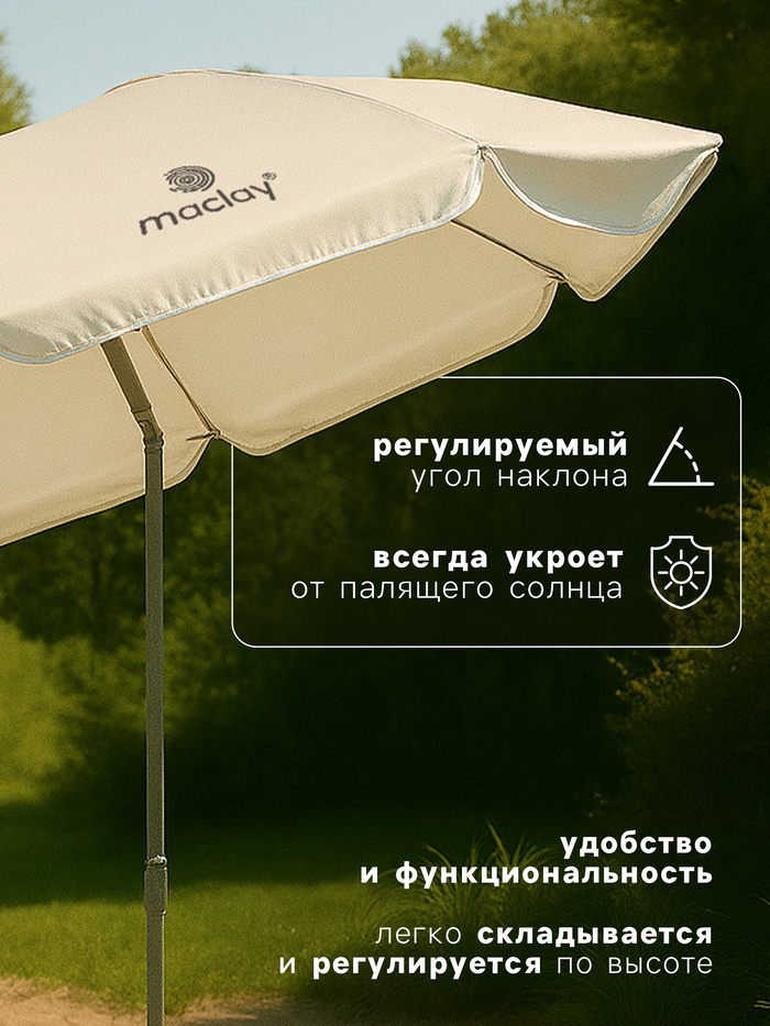 Зонт maclay - ваш надежный защитник от палящего солнца. Легко устанавливается, регулируется по высоте и настраивается под нужный угол, обеспечивая комфортную тень в любом месте. Прочная конструкция и продуманная эргономика делают его незаменимым помощником на пляже, даче или пикнике. Выбирайте удобство и наслаждайтесь отдыхом без забот!