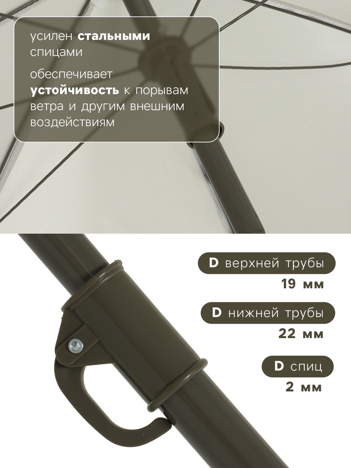 - Устойчивость - усиленные стальные спицы обеспечивают стабильность даже при умеренном ветре.