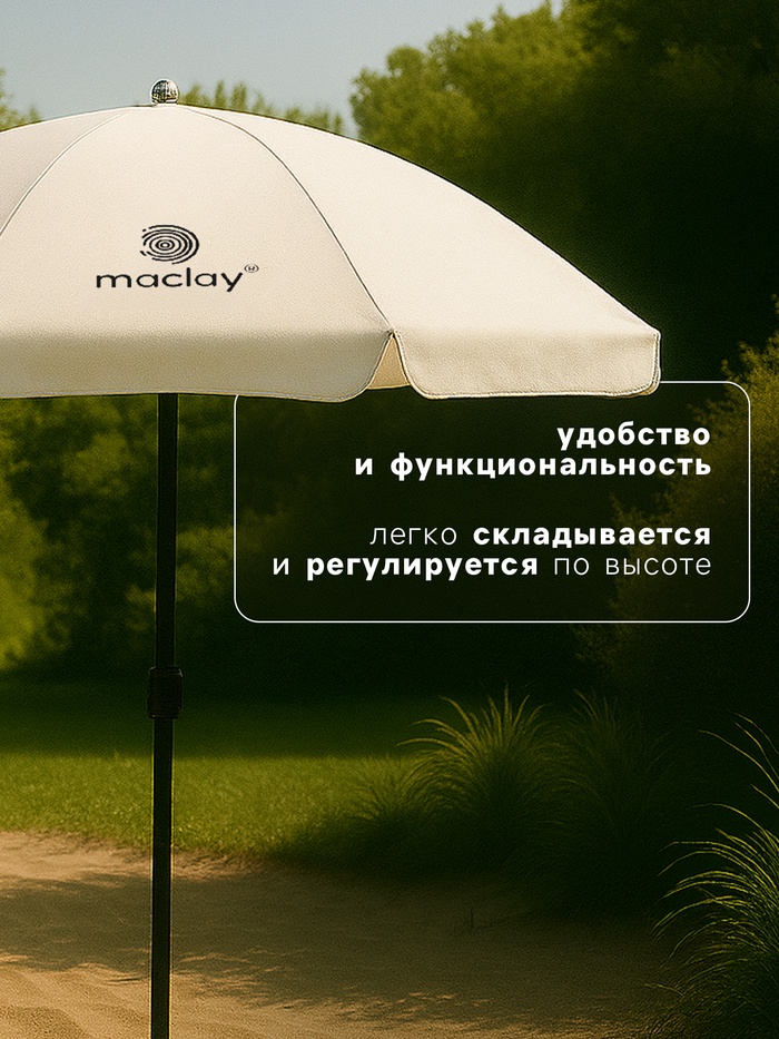 Складной зонт maclay предназначен для комфортного отдыха на открытом воздухе. Изделие защищает от УФ-излучения за счёт тефлонового покрытия с внутренней стороны купола. Материал зонта устойчив к воздействию внешних факторов, что гарантирует долгий срок службы.