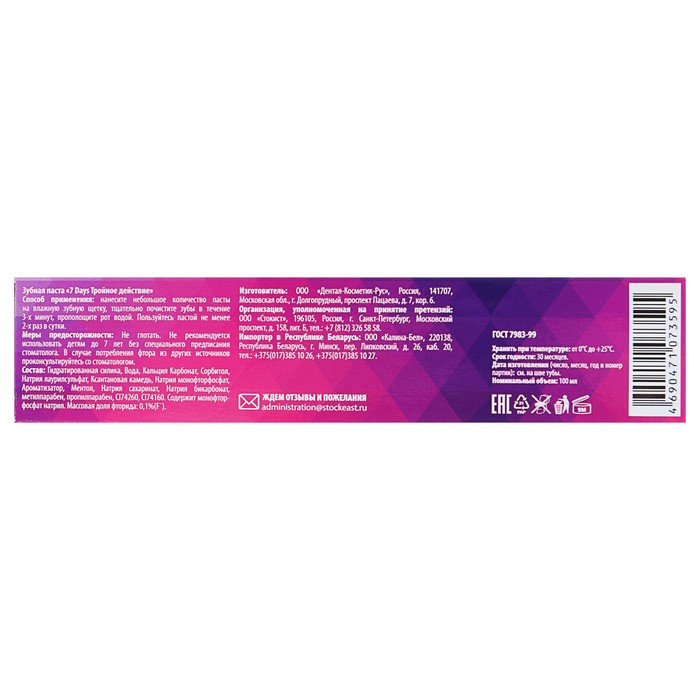 Зубная паста 7 days комплексная "Тройное действие", 100 мл