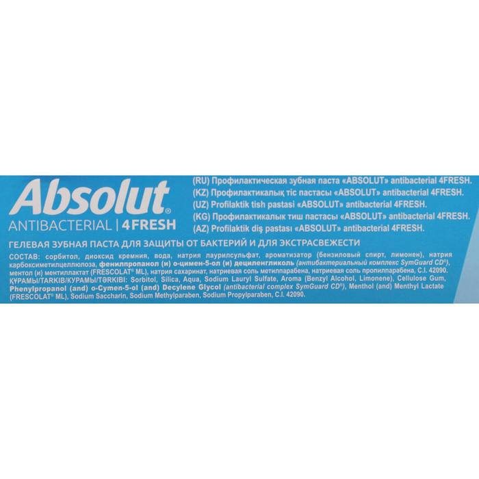Описание: профилактическая зубная паста "Absolut" 4White не только глубоко очищает, но бережно отбеливает зубную эмаль. Древесный уголь в составе высветляет даже глубокие пятна, способствуя эффективному отбеливанию зубов. А специально разработанный комплекс Symgard уничтожает 99,9% болезнетворных бактерий в полости рта.