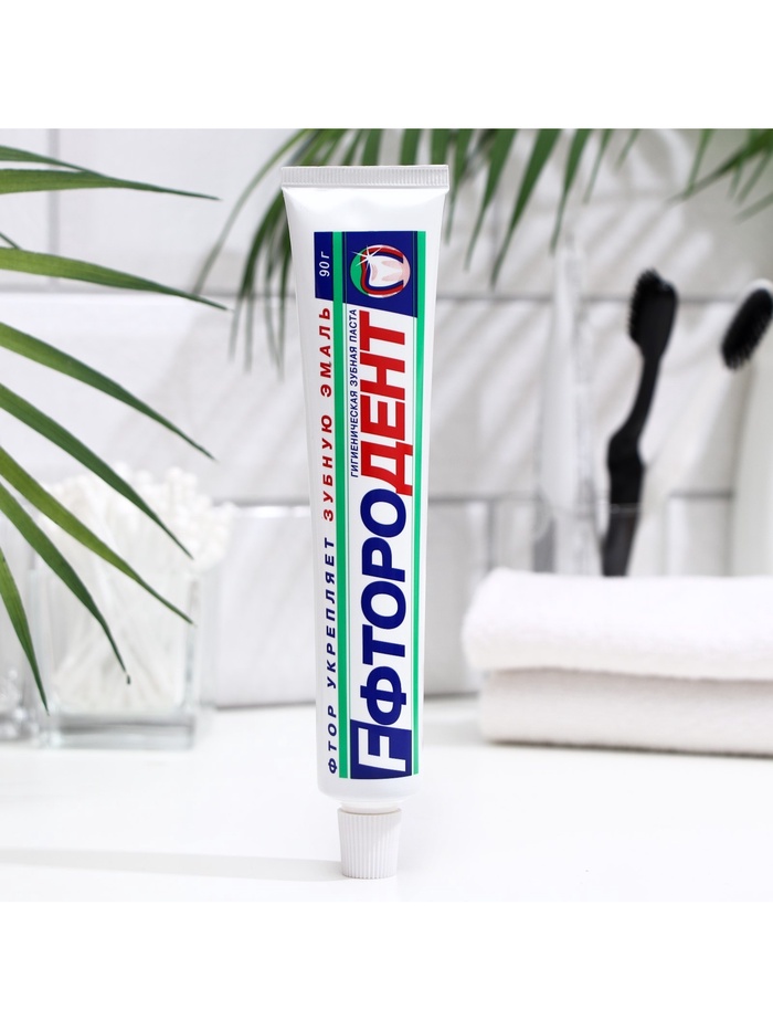 Описание: зубная паста Весна Фтородент. Зубная паста с фтором разработана специально для укрепления зубной эмали. Фтор в составе зубной пасты встраивается в структуру эмали и делает ее нерастворимой под действием кислот. Кроме того бактерицидный эффект фтора способствует предотвращению кариеса. За счет соединений фтора в зубной пасте бактерии менее активно генерируют опасные кислоты способствующие разрушению эмали зубов. Антибактериальные компоненты Зубной пасты предотвращают воспаление десен и заболевания полости рта. Благодаря мягкому чистящему составу Зубная паста не мягко полирует, очищает зубной налет и не разрушает эмаль. Легкий мятный привкус Зубной пасты Весна Фтородент освежает дыхание в течение долгого времени. С Зубной пастой Весна Фтородент вы легко сохраните десны здоровыми, зубы крепкими, а улыбку белоснежной!