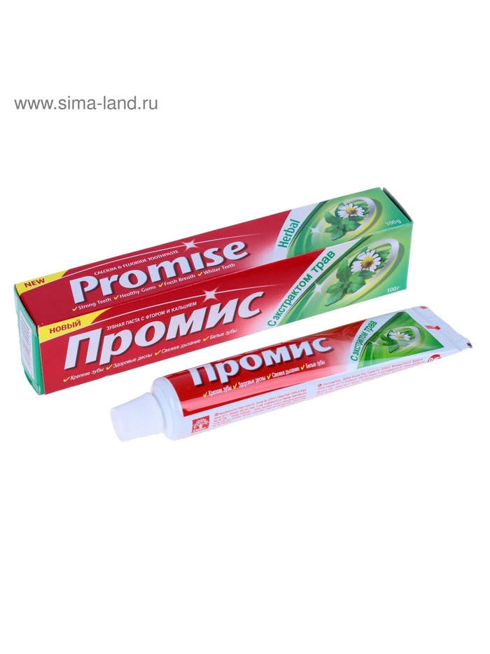 Зубная паста «Промис» с экстрактом трав содержит натуральные ингредиенты вяжущего действия, уменьшающие кровоточивость дёсен. Зубная паста Promise Herbal рекомендуется для чувствительных и часто кровоточащих дёсен.