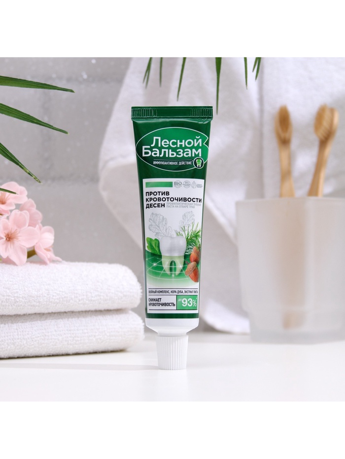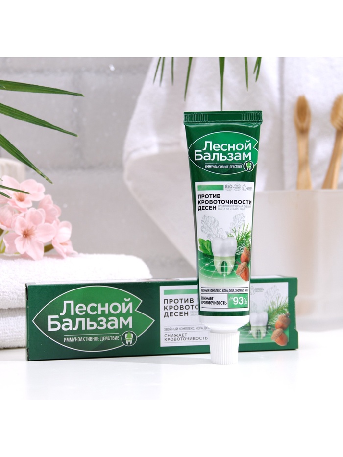 Состав: Aqua, Sorbitol, Silica, Sodium Lauryl Sulfate, Aroma, Cellulose Gum, Abies Sibirica Leaf Extract, Achillea Millefolium Extract, Chamomilla Recutita (Matricaria) Flower Extract, Chelidonium Majus Extract, Hypericum Perforatum Flower/Leaf/Stem Extract, Picea Leaf Extract, Polyprenol, Quercus Alba Bark Extract, Urtica Dioica (Nettle) Leaf Powder, Sodium Monofluorophosphate, Citric Acid, Glycerin, Phenoxyethanol, Sodium Benzoate, Sodium Chloride, Sodium Hydroxide, Sodium Saccharin, Sodium Sulfate, Eugenol, Limonene, CI 19140, CI 42090, CI 77891.