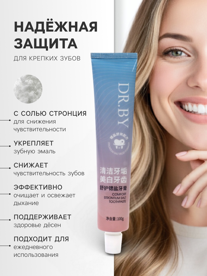 Зубная паста с солью стронция, 100 г — профессиональный уход для чувствительных зубов, который помогает уменьшить болезненные ощущения и обеспечить глубокую защиту эмали каждый день.