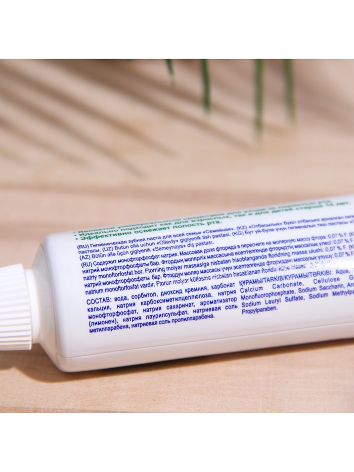 Описание: гигиеническая зубная паста для всей семьи. Является универсальным средством для ухода за полостью рта. Идеально подходит как для взрослых, так и для детей старше 14 лет. Зубная паста помещена в мягкий тюбик, что способствует полному использованию. Зубная паста обладает средним пенообразованием, эффективно освежает полость рта.