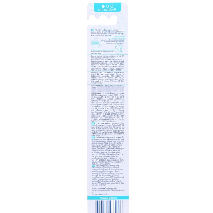 Зубная щетка Exxe Отбеливающая с мягкой щетиной со Фтором— это удобная эргономичная ручка, отбеливающие волокна фтора и ультратонкие заостренные щетинки. Удобный изгиб ручки позволяет легко и без дополнительного давления на десны очистить дальние поверхности. Отбеливающие волокна фтора помогают добиться кристальной белизны зубов. Ультратонкие заостренные щетинки деликатно и бережно воздействуют на зубную эмаль, не травмируя поверхность зубов.