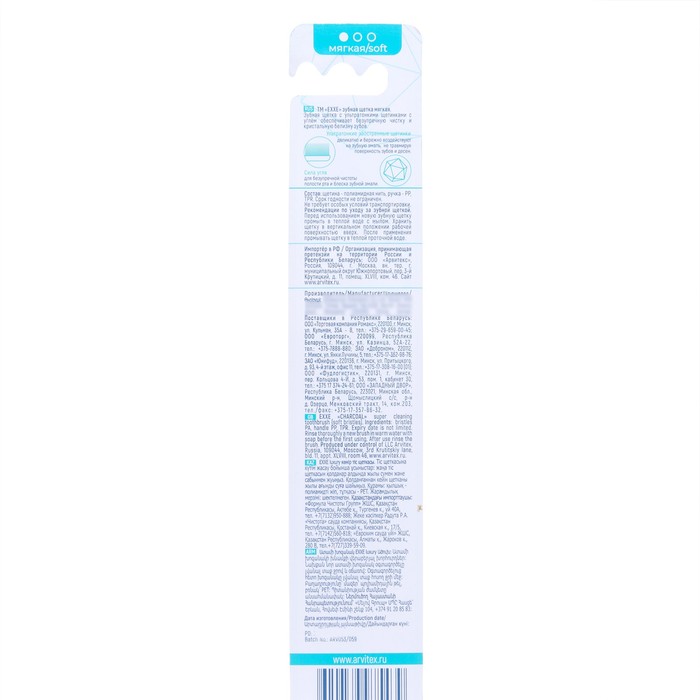 Зубная щетка Exxe с мягкой щетиной с Углем — это удобная эргономичная ручка, сила угля и ультратонкие заостренные щетинки. Удобный изгиб ручки позволяет легко и без дополнительного давления на десны очистить дальние поверхности. Сила угля для безупречной чистоты полости рта и блеска зубной эмали. Ультратонкие заостренные щетинки деликатно и бережно воздействуют на зубную эмаль, не травмируя поверхность зубов.