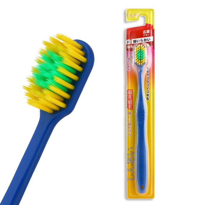Зубная щетка с широкой чистящей головкой и плотно прилегающими сверхтонкими щетинками позволяет тщательно очистить самые труднодоступные места.