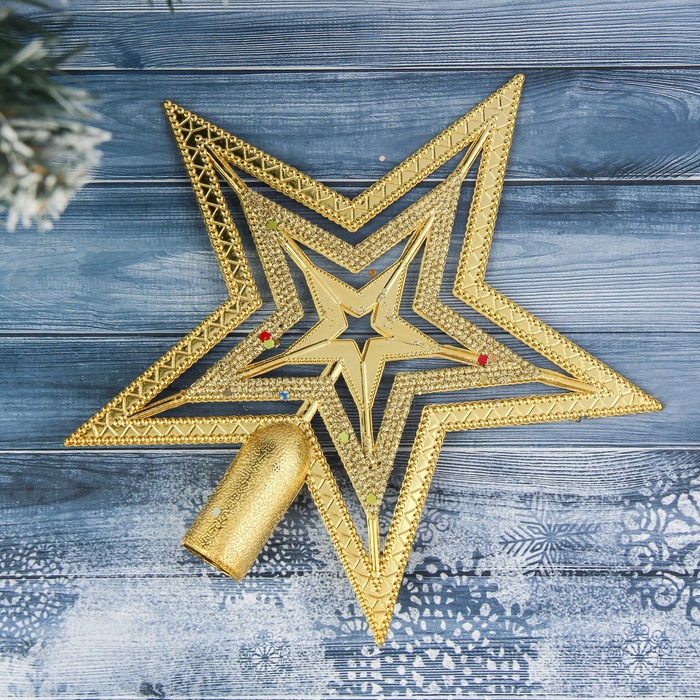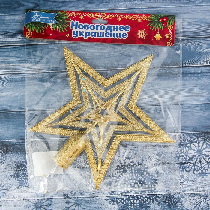 Ёлочная звезда «Конфетти» — яркий и лаконичный финальный акцент новогодней ёлки. Эта верхушка размером 18,3×18,5 см выполнена в стиле ар-деко с элементами классики и новогоднего барокко. Золотистый оттенок подчёркивает зимнюю торжественность и создаёт ощущение праздника без излишней вычурности.