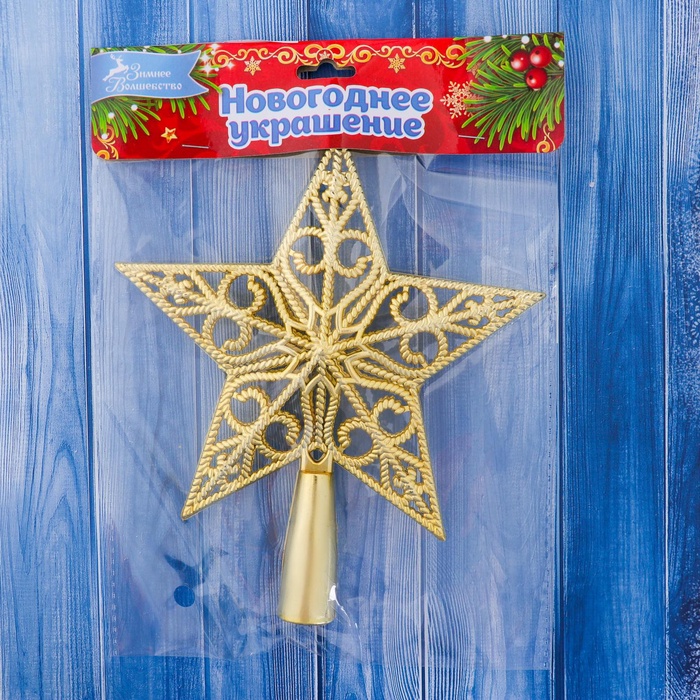 Эта звезда — больше чем завершение ёлки. Она знаменует собой финал подготовки к Новому году и становится его светящимся символом. Её золотистые грани с рельефом ловят гирляндное сияние, напоминая мерцающий иней или зимнюю зарю. Размер 16,5 см делает её идеальной для средних ёлок — украшение остаётся заметным, но не перегружает общую композицию.