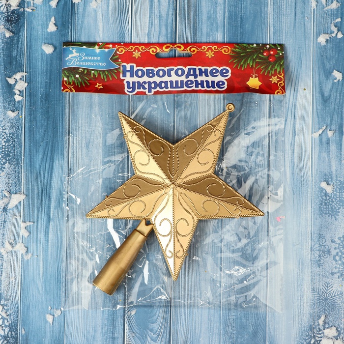 Добавьте элегантности новогодней ёлке с золотистой верхушкой с узором высотой 17 см, выполненной в классическом стиле с элементами барокко и ар-деко. Этот пластиковый наконечник подчёркивает торжественность и завершённость праздничного декора.