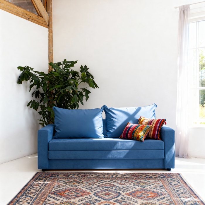 Диван прямой «Верона», механизм аккордион, обивка велюр, цвет синий
