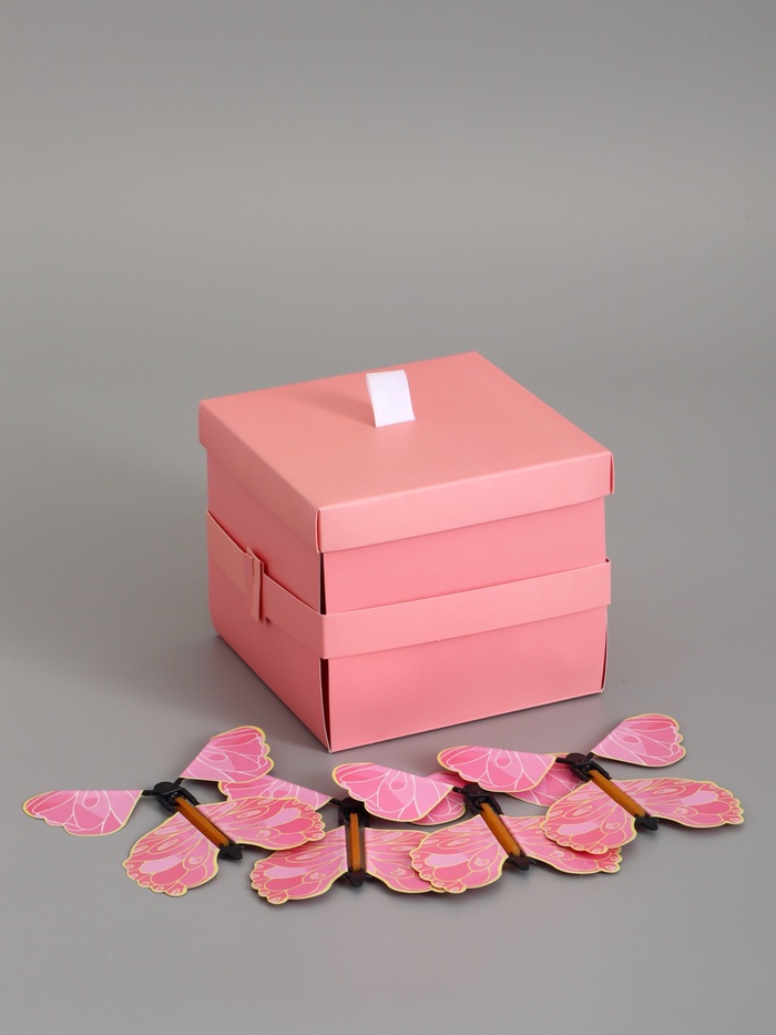 Коробка-сюрприз подарочная «Бабочки» розовая, с вылетающими бабочками, 15×14.8×12.5 см