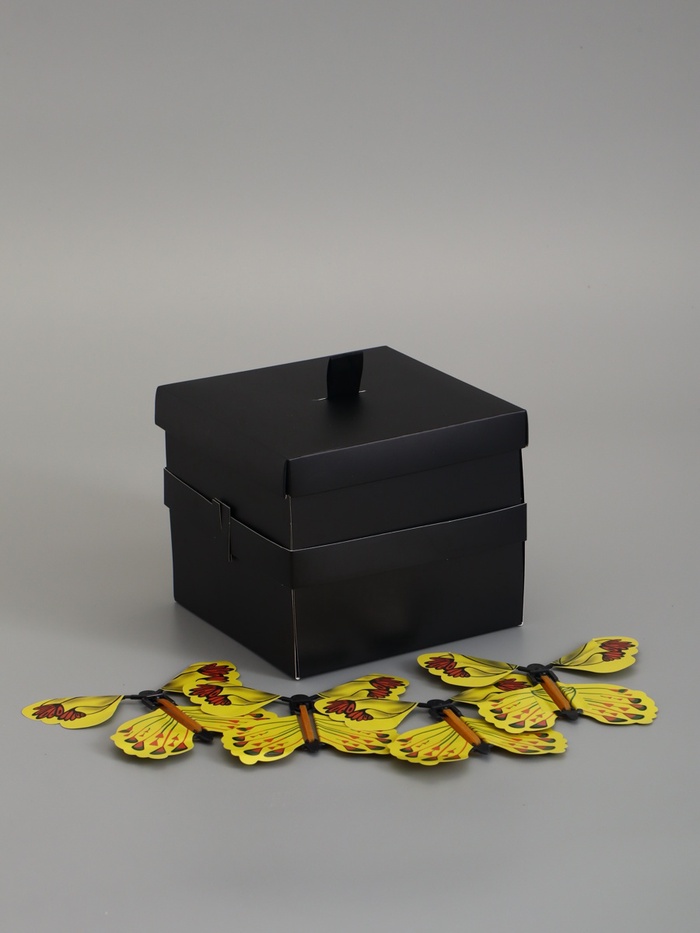 Коробка-сюрприз подарочная «Бабочки» чёрная, с вылетающими бабочками, 15×14.8×12.5 см