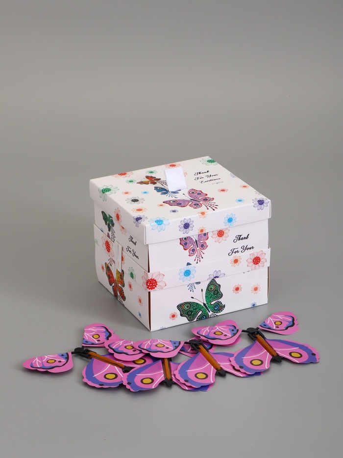 Коробка-сюрприз подарочная «Бабочки» белая, с вылетающими бабочками, 15×14.8×12.5 см