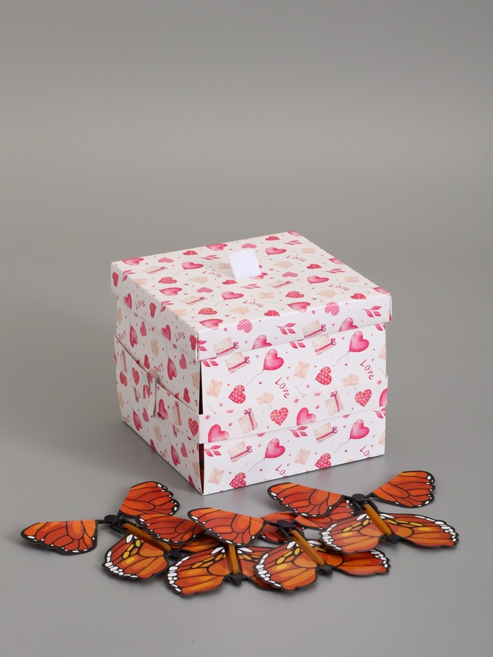 Коробка-сюрприз подарочная «Бабочки, Сердца» розовая, с вылетающими бабочками, 15×14.8×12.5 см