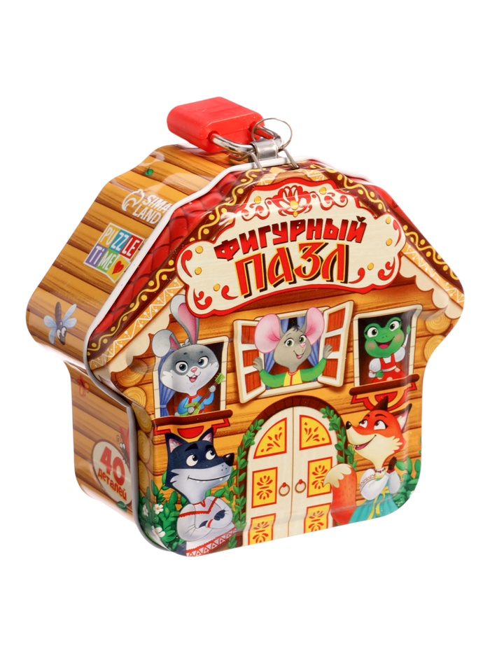 Фигурный пазл в металлической копилке с замочком «Теремок», 40 деталей