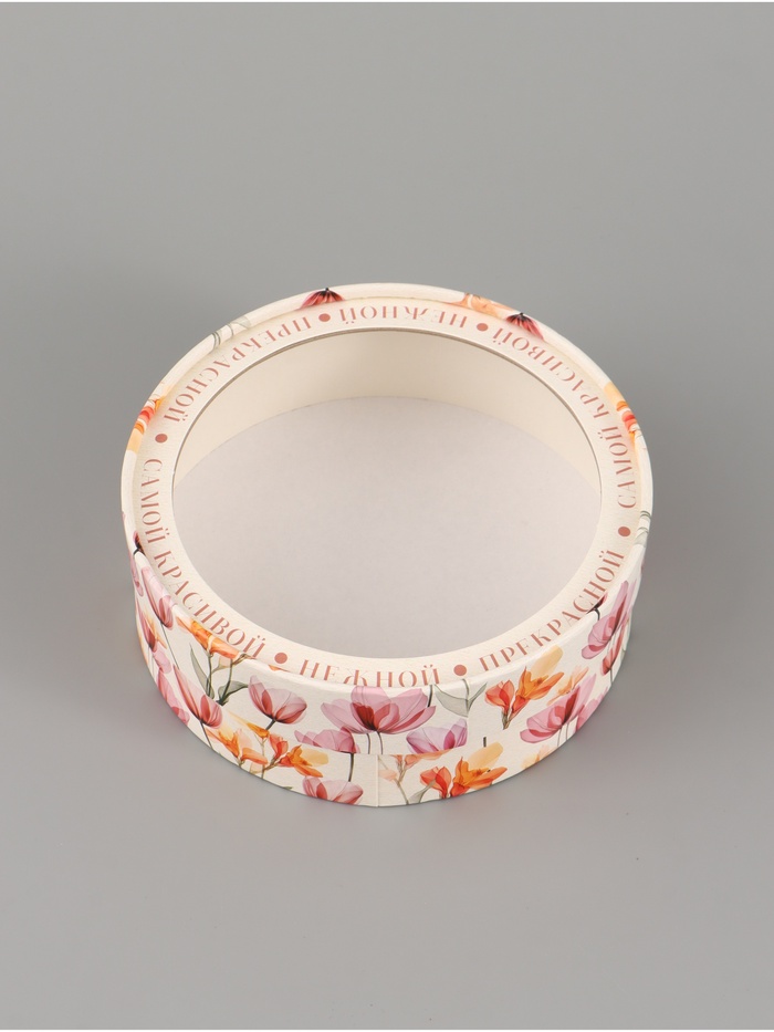 Коробка тубус с окном «Цветы», 16 х 16 х 5 см