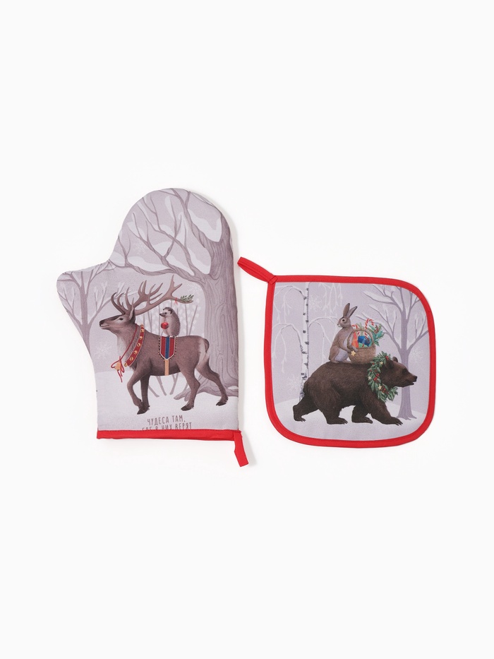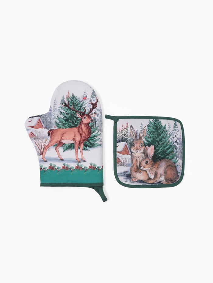 Набор кухонный «Этель. Лесные звери», варежка-прихватка 20×28 см, прихватка 19×19 см