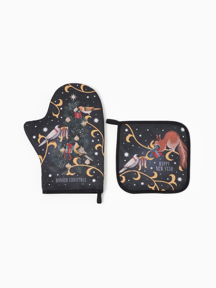 Набор кухонный «Этель. Волшебного счастья»: прихватка 19×19 см, варежка-прихватка 20×28 см