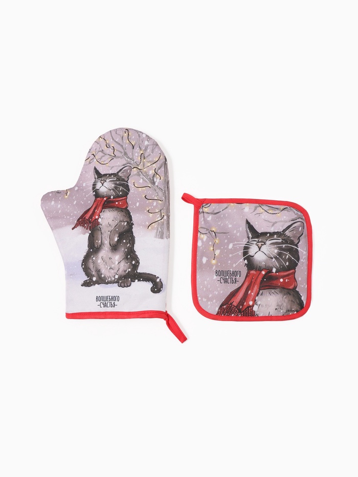 Набор кухонный «Этель. Кот», варежка-прихватка 20×28 см, прихватка 17×17 см