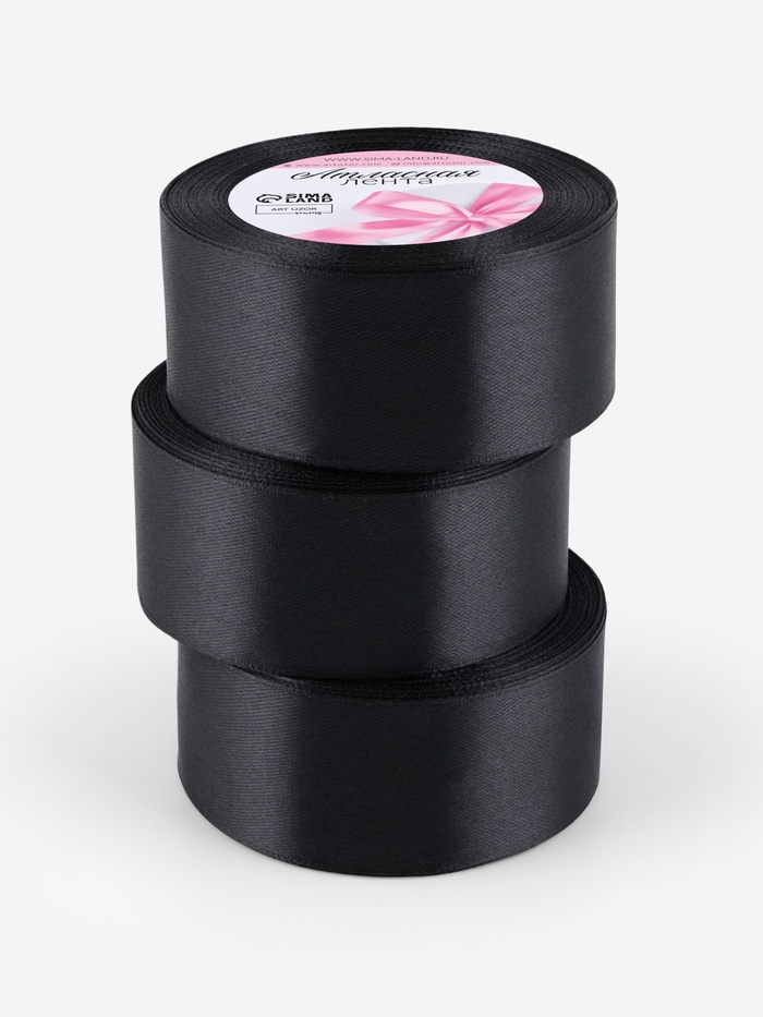 Атласная лента, набор 3 шт., 40 мм, 23±1 м, чёрная №39