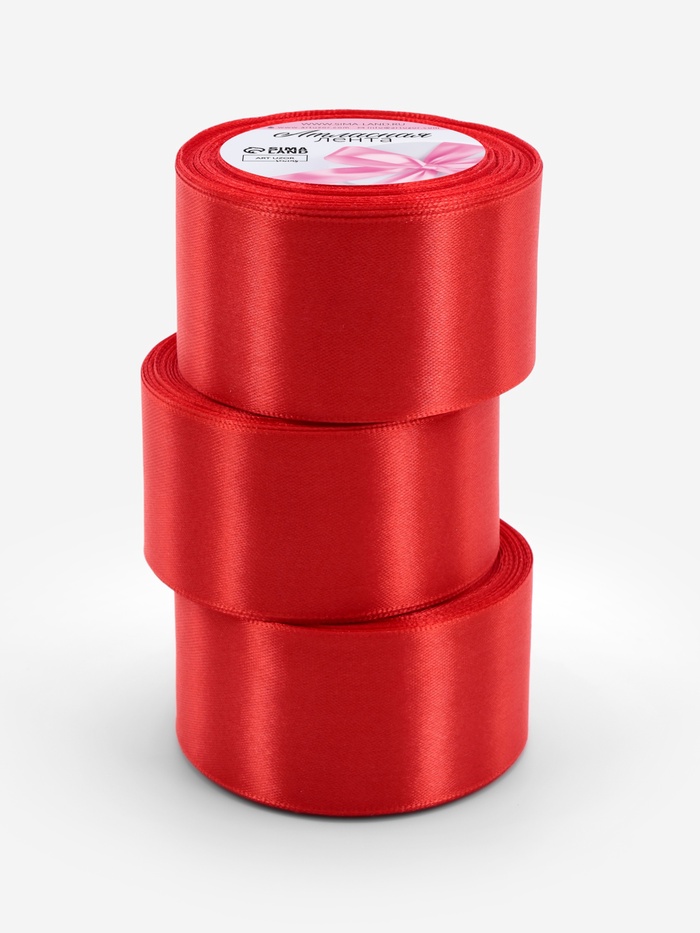 Атласная лента, набор 3 шт., 50 мм, 23±1 м, красная №26