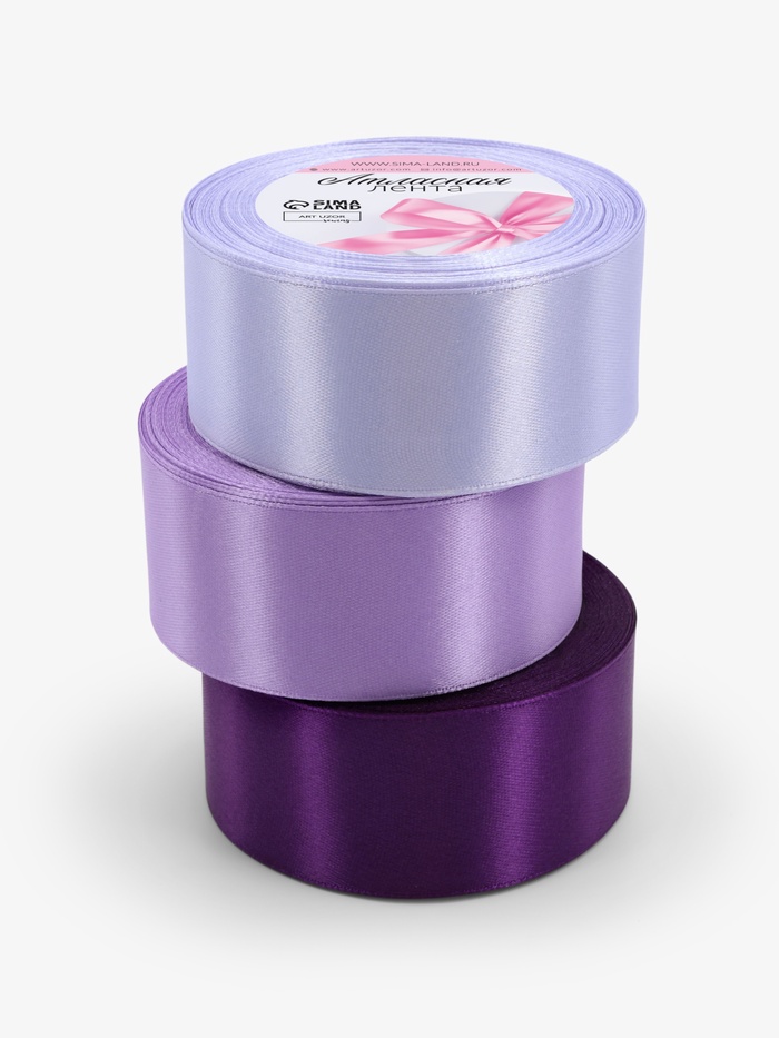 Атласная лента, набор 3 шт., 40 мм, 23±1 м, сиреневая, фиолетовая