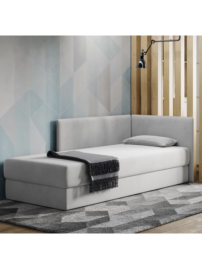 Кровать — тахта «Миа», левая, 1950×810 мм, велюр, цвет ультра смог/мадрид 982