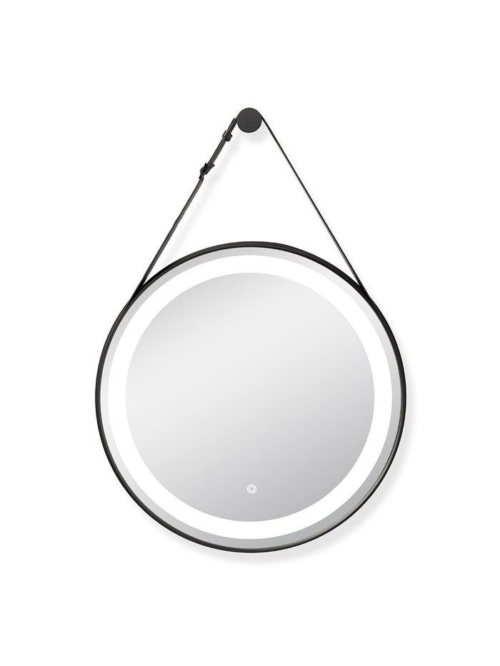 Зеркало с LED-подсветкой сенсорное, в круглой раме из металла с ремешком, d=57 см