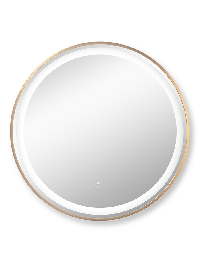Зеркало с LED-подсветкой, сенсорное, в круглой раме из алюминия, d=60 см, золотой