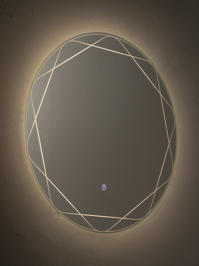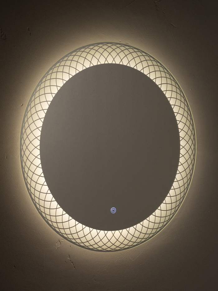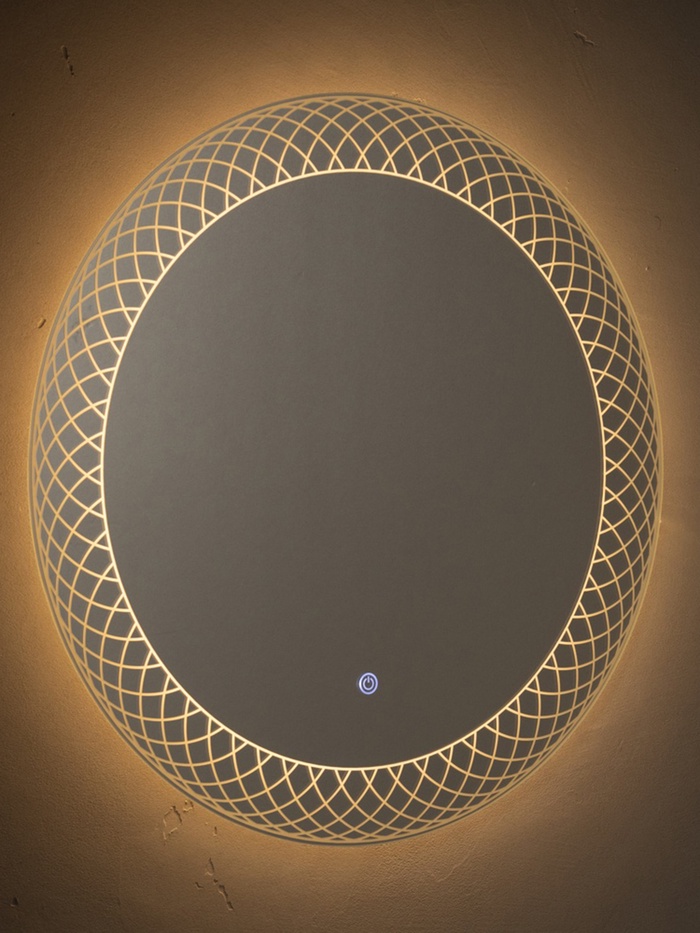 Зеркало с LED-подсветкой сенсорное, круглое с гравировкой полосы, d=60 см
