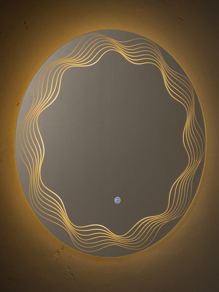 Зеркало с LED-подсветкой сенсорное, круглое с гравировкой, d=60 см "Волна"