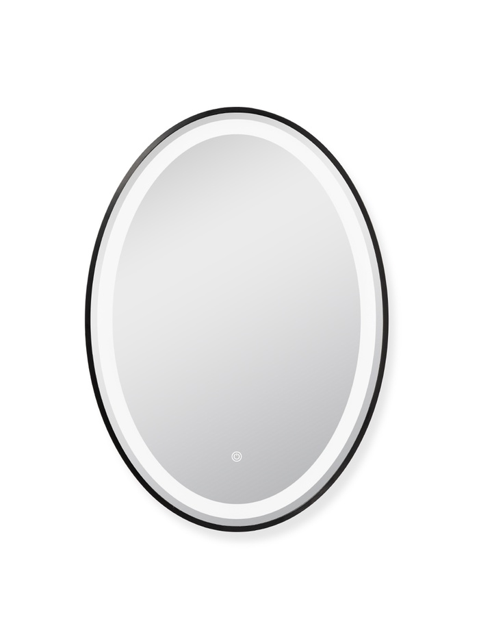 Зеркало с LED-подсветкой сенсорное, в овальной раме из алюминия, 70х50 см, черный