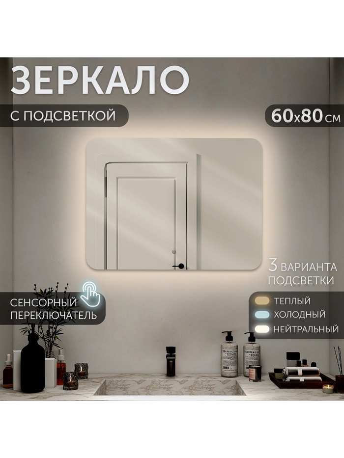 Зеркало с LED-подсветкой сенсорное , прямоугольное 80х60 см