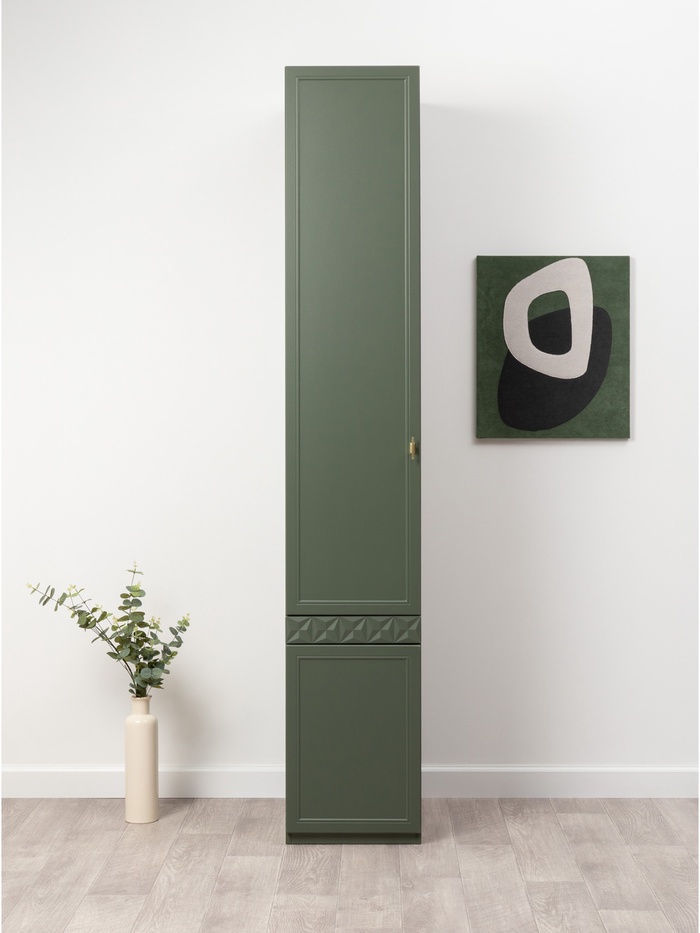 Шкаф - пенал «Марион 16.340.01», 400×593×2303 мм, цвет дымчатый зеленый / олива шагрень