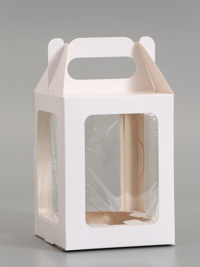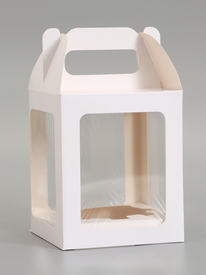 Кондитерская упаковка, коробка с оконом, белая, 13×13×16 см