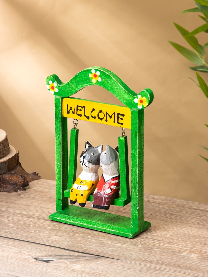 Сувенир интерьерный "Кошечки на качелях" 15х7х25 см, дерево, цв. зелёный